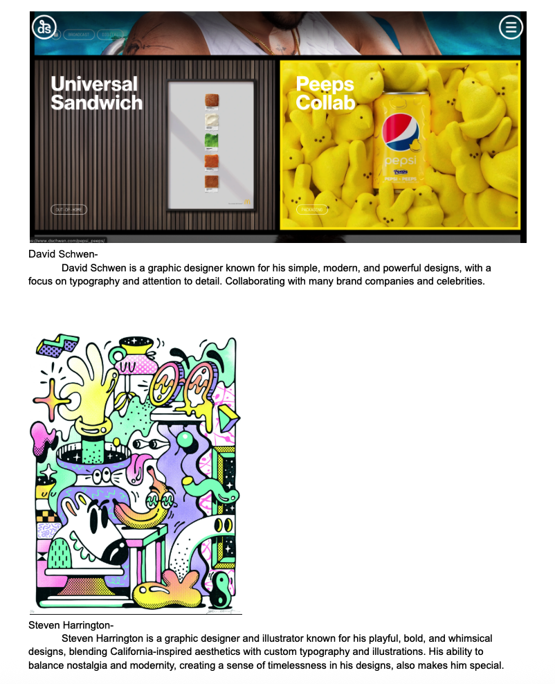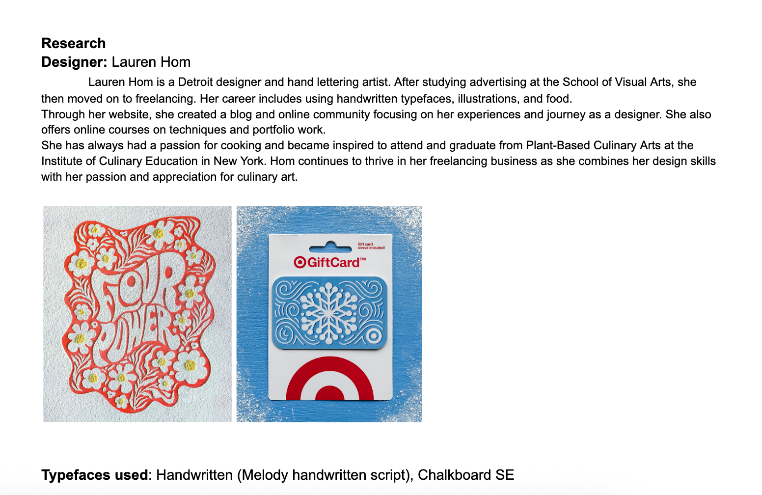 My project reinterprets Lauren Hom’s work as a postage stamp, featuring orange, purple, and white with handwritten type and geometric fruit shapes to create a playful, personal vibe. The distinctive type would remain the same, regardless of the medium, simply shifting for each format. On social media, it could be animated with the words being written or juice squeezing from an orange. In digital ads or emails, the stamp could be the focal point with the use of oranges and purples, and on billboards or signage, the imagery could be blown up with more space for clarity. I even tested this outside of digital in my sewing class, where I stitched the design onto a maxi skirt pocket, which showed me that type and imagery can live in so many forms. No matter the platform, the design can be easily recognized.